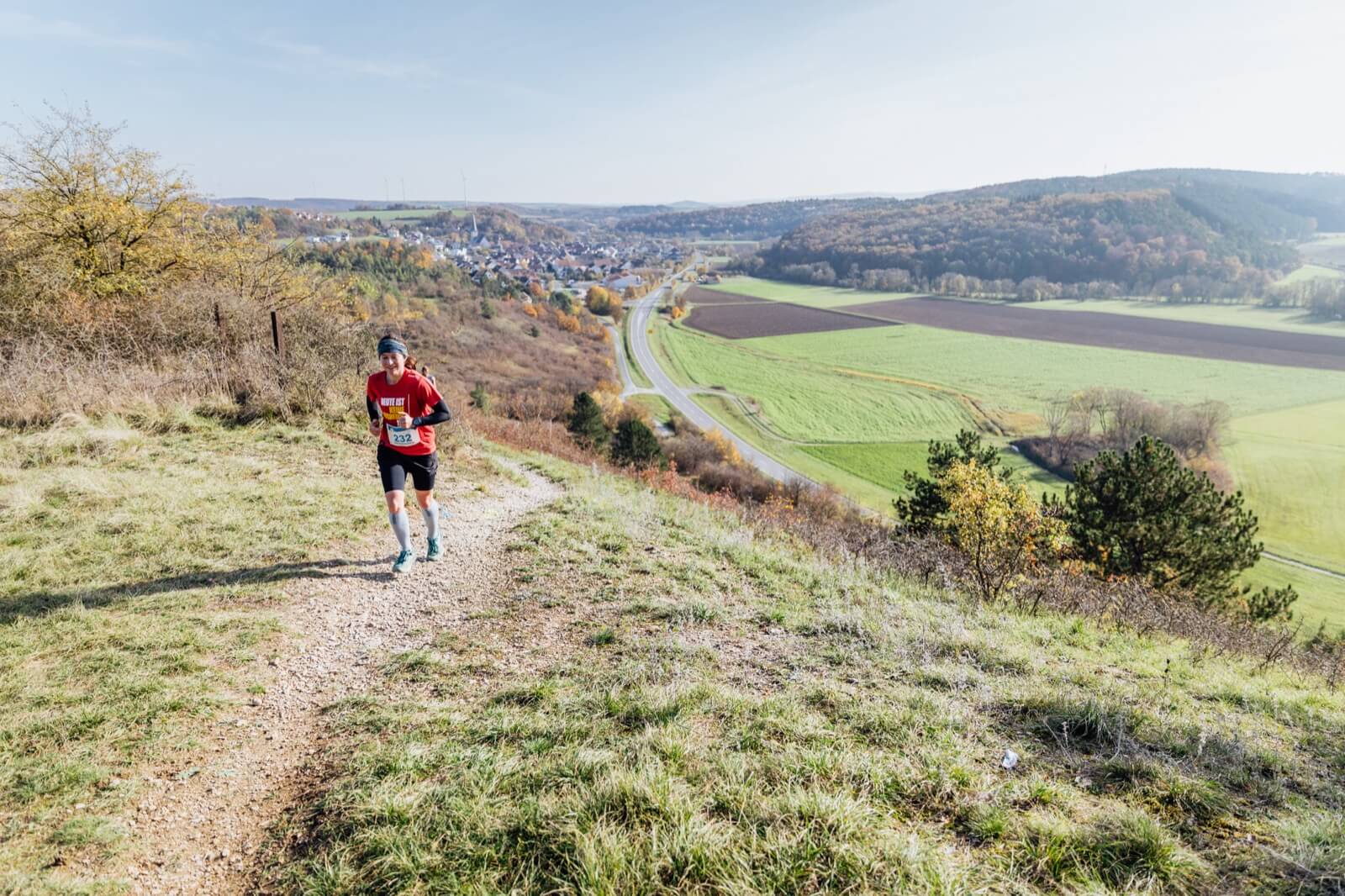 Über Wiesenwege verläuft die Strecke weiter nach Hollstadt, wo der längste Anstieg der Runde hinauf zur Erntekrone mit herrlichem Panoramablick wartet. Oben geht es leicht ansteigend durch den Wald, bevor ein langer Bergabtrail zurück nach Mittelstreu führt. Im Finale folgt noch ein letzter Anstieg, bevor die Strecke in einem abschließenden Downhill durch das Dorf zurück zum Sportzentrum und ins Ziel mündet. Anspruchsvolle Anstiege, schnelle Abwärtspassagen und großartige Ausblicke machen die 15 km zu einer kurzweiligen, aber fordernden Runde.