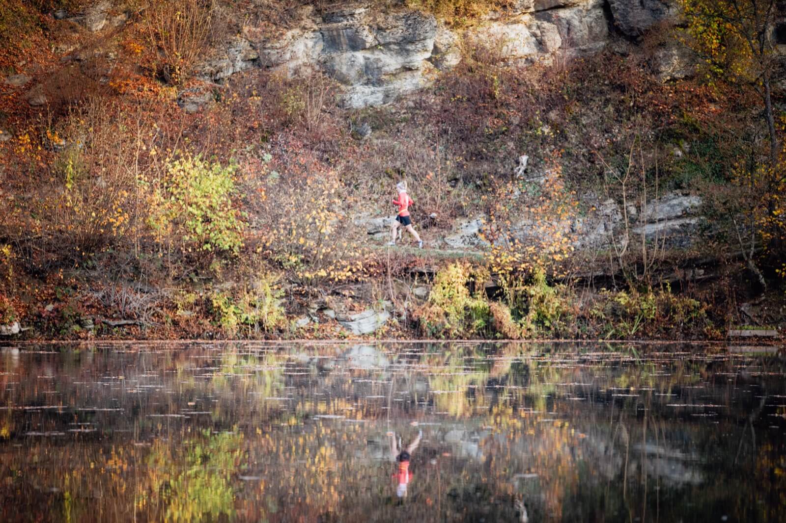 Die erste Runde (ca. 16 km) führt vom Sportplatz Mittelstreu hinauf auf den Eiersberg, über Trails und Schotterwege zum idyllischen Frickenhäuser See mit Seeumrundung und weiter nach Wechterswinkel. Nach einem welligen Rundkurs über den Eiersberg geht es zurück nach Mittelstreu.